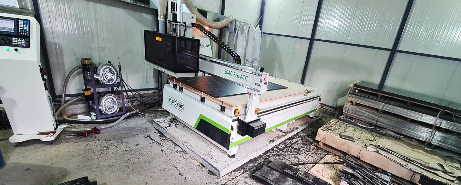Hala de producție are o suprafață totală de 4.500 m², fiind echipată cu utilaje de ultimă generație pentru debitare, prelucrare și montaj.